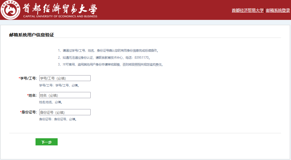 就能注册一个您想要的校级邮箱账号。邮箱注册成功即可使用邮箱,在邮箱“设置-账户”中可完善个人信息,填写“手机号码”。如忘记密码,可通过访问http://mail.cueb.edu.cn,点击“忘记密码”,按提示操作,通过手机验证码重置邮箱密码。